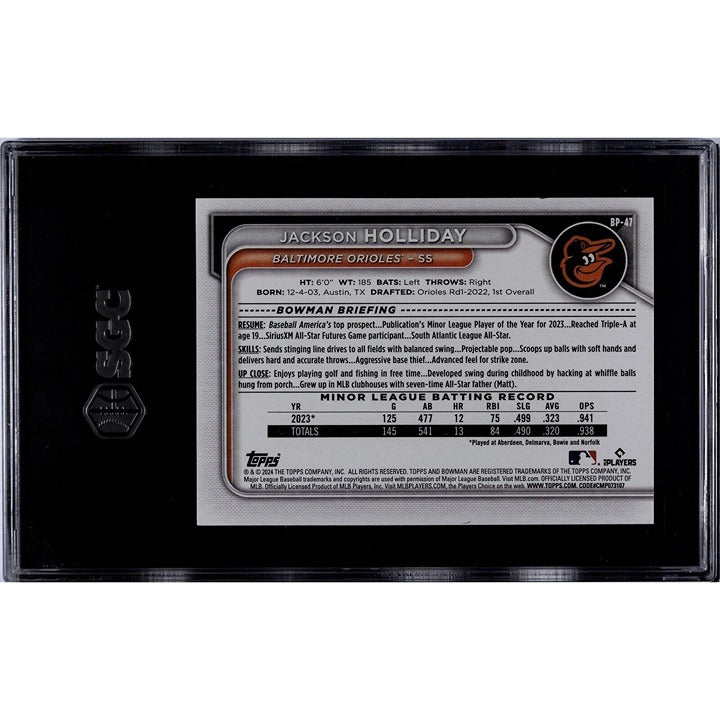 2024 Bowman Jackson Holliday RC* Prospects MLB Baltimore Orioles #BP-47 - SGC 10