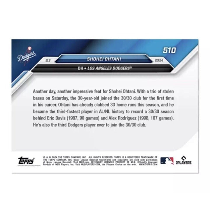 2024 MLB TOPPS NOW Shohei Ohtani* 1ST Career 30/30 SEASON MLB Angels/Dodgers 510
