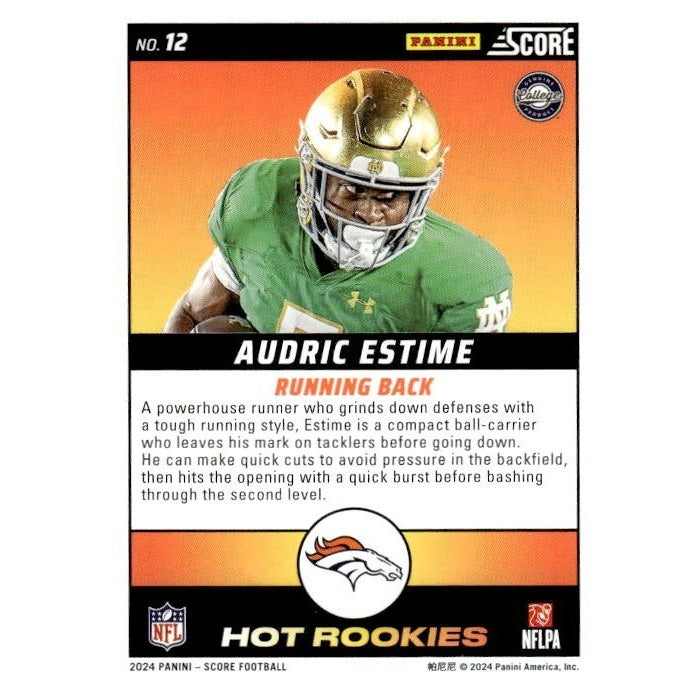 2024 NFL Score Football #12 Audric Estime Hot Rookies Denver Broncos - Near Mint