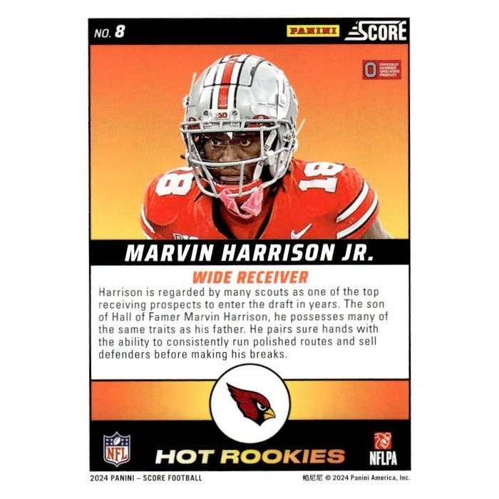 2024 NFL Score Football #8 Marvin Harrison Jr. Hot Rookies Cardinals - Near Mint