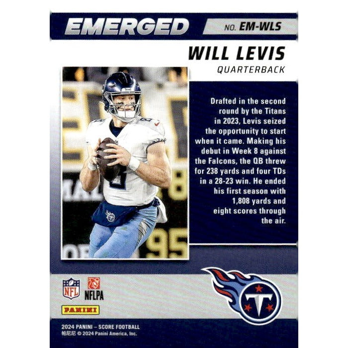 2024 NFL Score Football #EM-WLS Will Levis* Emerged Titans - Near Mint or Better