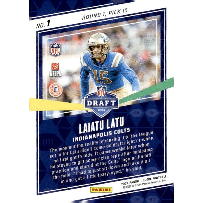 2024 NFL Score Football Laiatu Latu RC* Draft Indianapolis Colts #1 - Near Mint