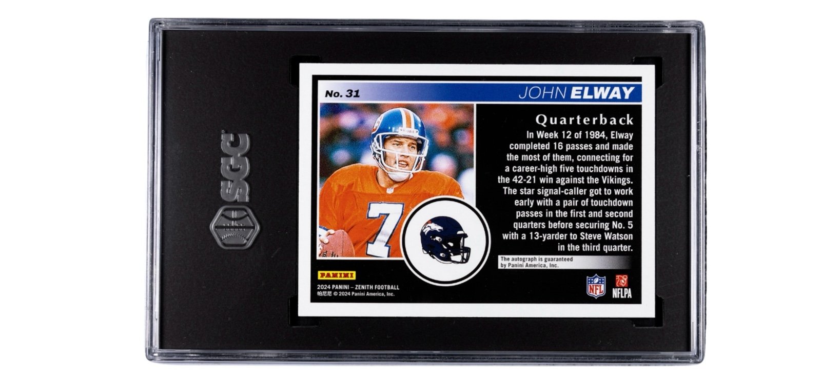 2024 Panini Zenith “No Huddle” John Elway Auto NFL Denver Broncos - HOF SGC 9.5