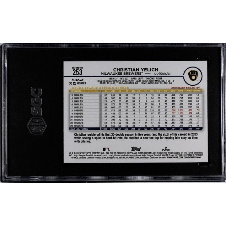 2024 Topps Chrome Christian Yelich Refractor MLB Milwaukee Brewers 253 - SGC 9.5