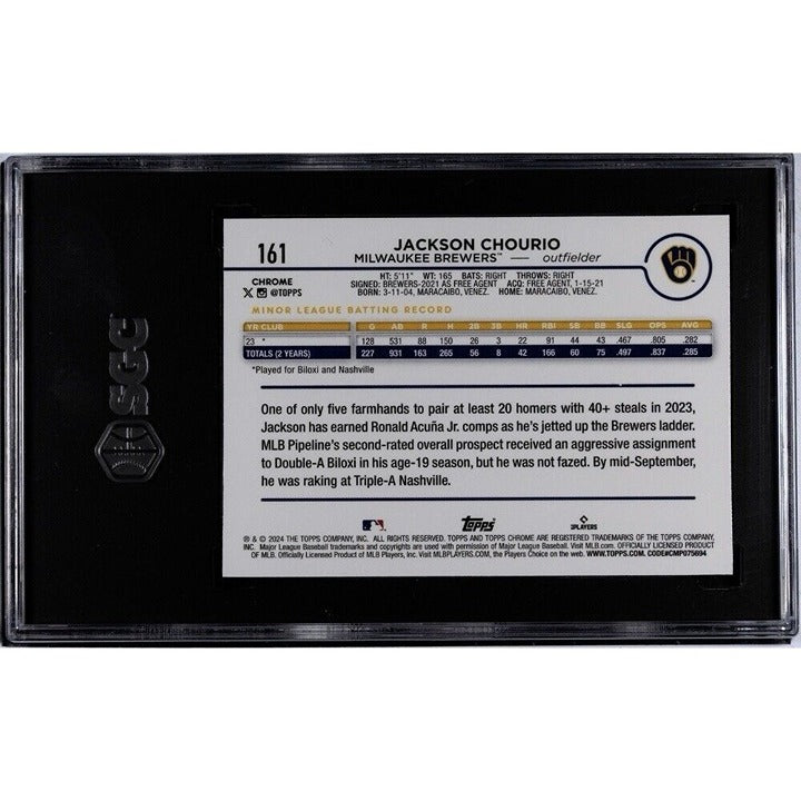 2024 Topps Chrome Jackson Chourio RC MLB Rookie Baseball Card #161 Brewers SGC 9