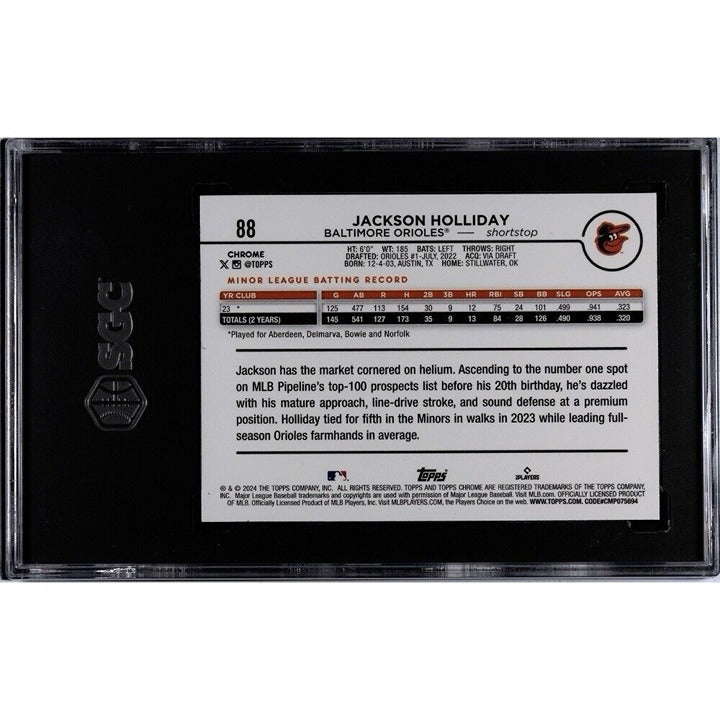 2024 Topps Chrome Jackson Holiday RC* Card #88 Baltimore Orioles Baseball SGC 10