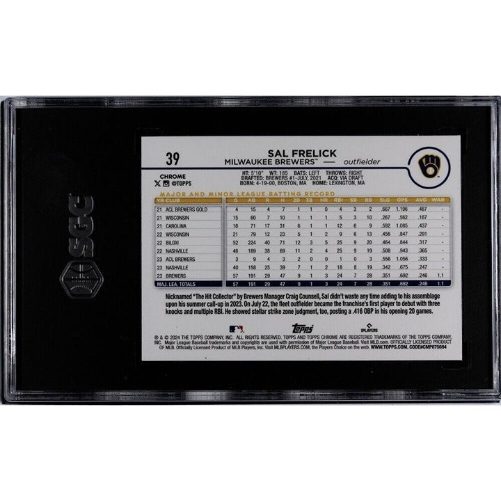 2024 Topps Chrome SAL FRELICK RC* Card #39 MLB Milwaukee Brewers Rookie - SGC 10