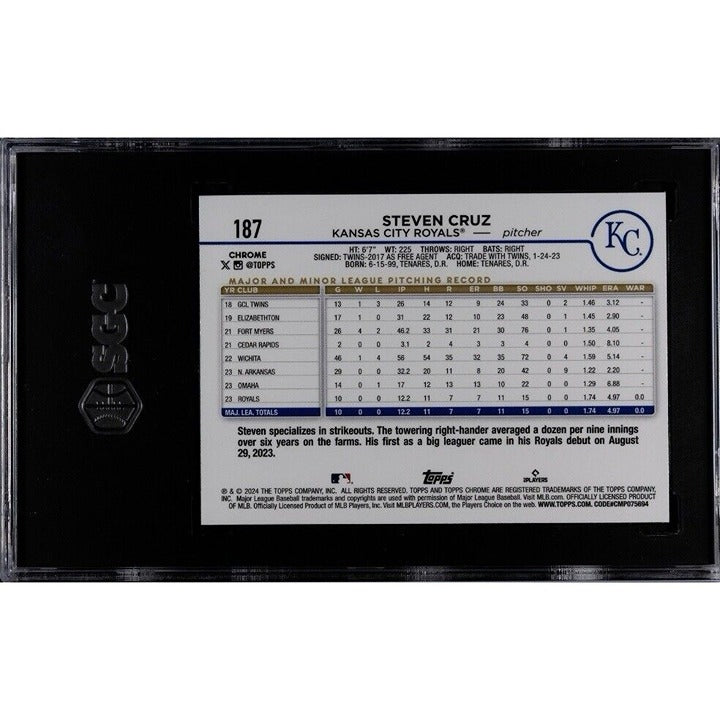 2024 Topps Chrome Steven Cruz RC MLB KC Royals Baseball Rookie Card 187 - SGC 10