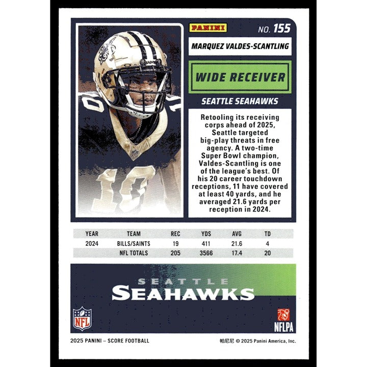 2025 NFL SCORE Panini Football Card Marquez Valdes-Scantling Seahawks 155 - Mint