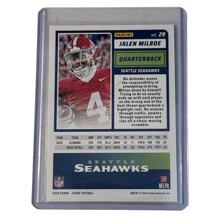 2025 Score Football Card #29 - Jalen Milroe RC* Seattle Seahawks 29 - Near Mint!