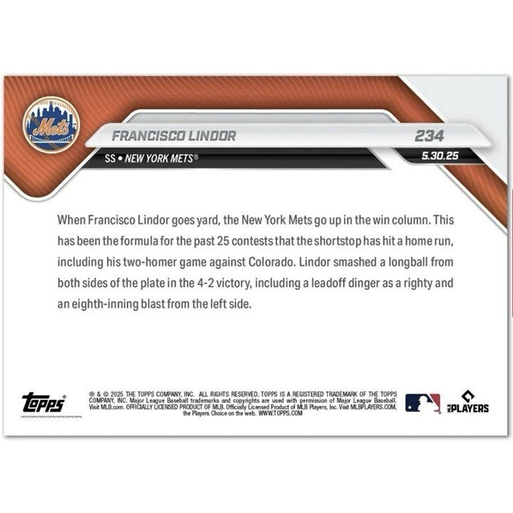 2025 Topps NOW Francisco Lindor #234 New York Mets MLB Baseball Blast Both Sides