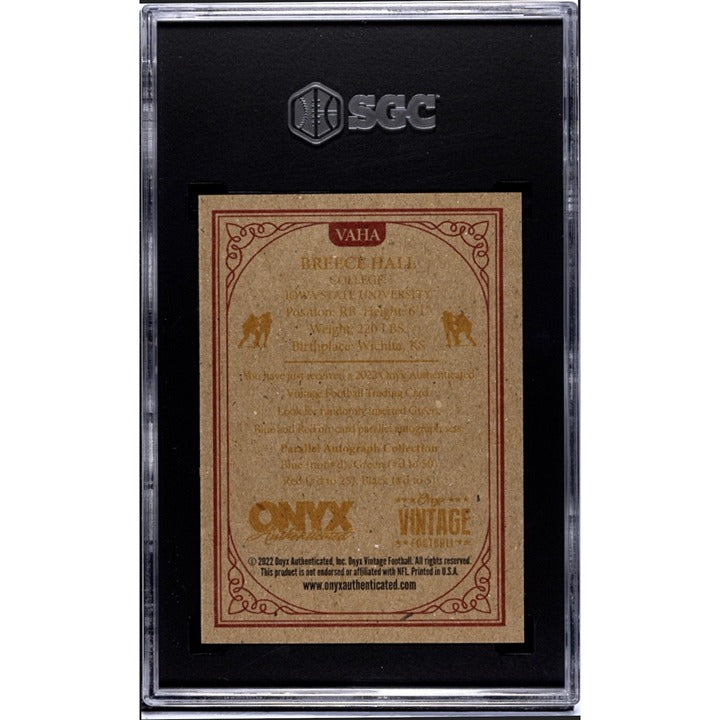 /25* 2022 Onyx Vintage Breece Hall On Card Red Ink Auto SP vAHA NFL Jets SGC 9.5