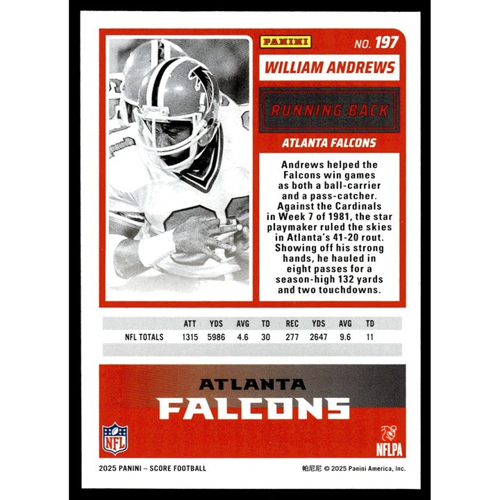 /250 William Andrews - 2025 Panini Score NFL Football Card 197 - Atlanta Falcons
