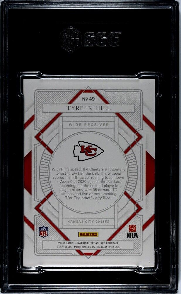 28/50* Tyreek Hill 2020 Panini Natl. Treasures NFL Chiefs/Dolphin s #49 - SGC 9.