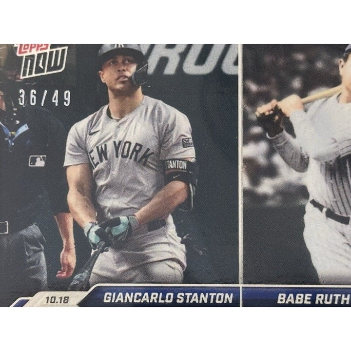 36/49* HISTORY! Stanton/Ruth Ties Ruth W/15 PS HR 2024 Topps Now NY Yankees #853
