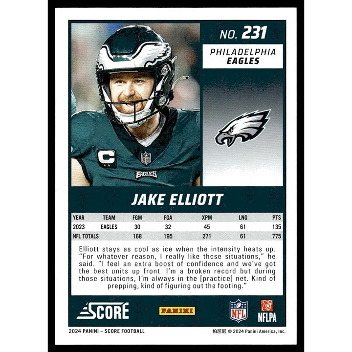 4/100^ 2024 Score NFL Football #231 Jake Elliott Green Philadelphia Eagles MINT!
