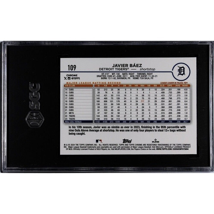 42/250* JAVIER BAEZ 2024 Topps Chrome Purple REFRACTOR* MLB Detroit Tigers SGC 9