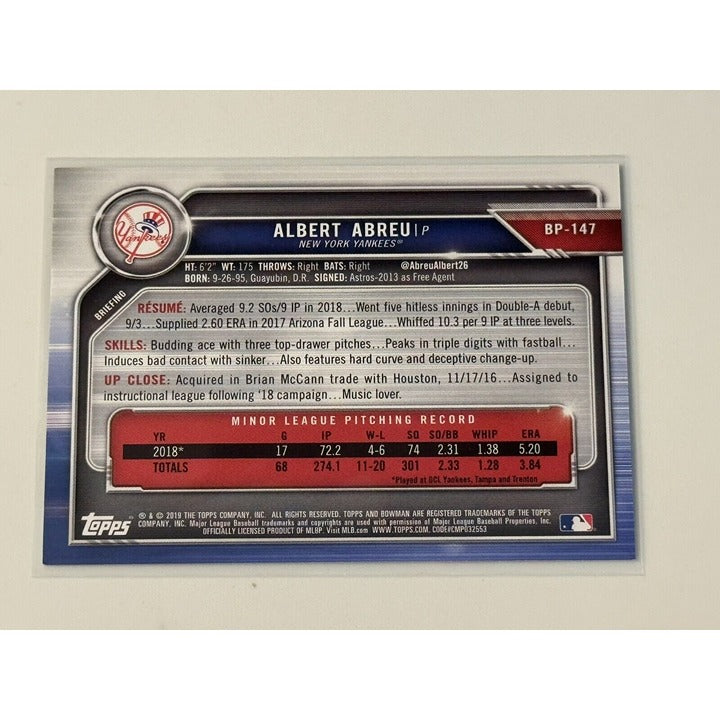 420/499* Albert Abreu RC 2019 Bowman Prospects Card #BP-147 MLB New York Yankees