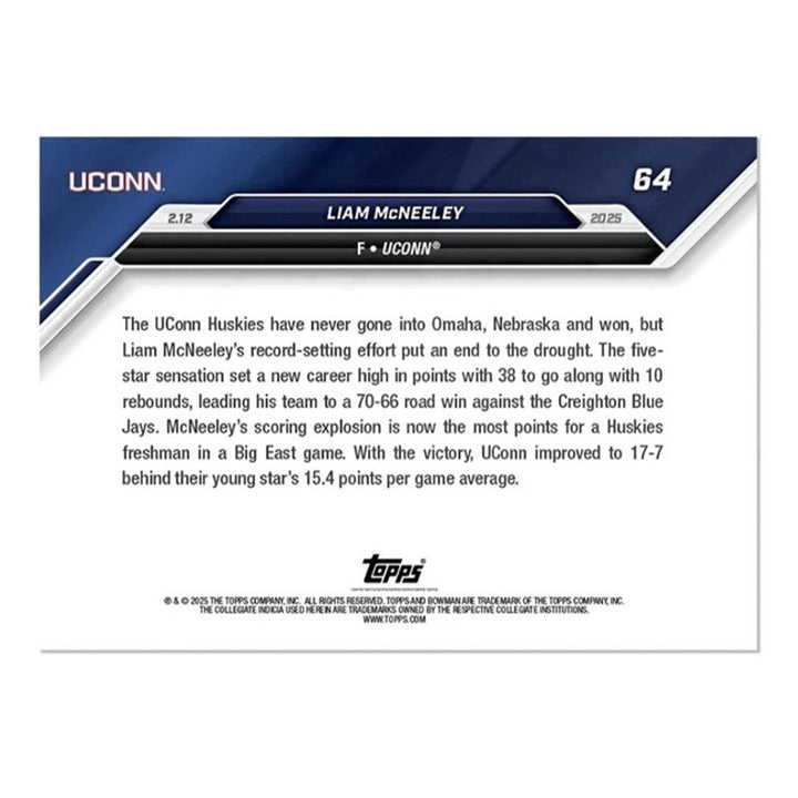 48/49* Liam McNeeley RC - 2024-25 Bowman U NOW® - NCAA UCONN Basketball Card #64