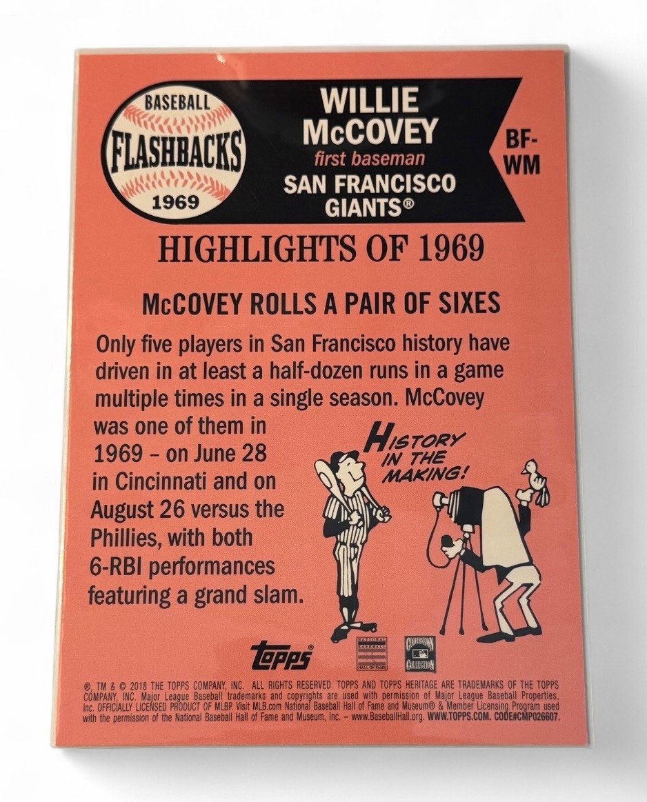 /49 OVERSIZED* Willie McCovey* 2018 Topps Heritage FB's FB-HK 1969 MLB SF Giants