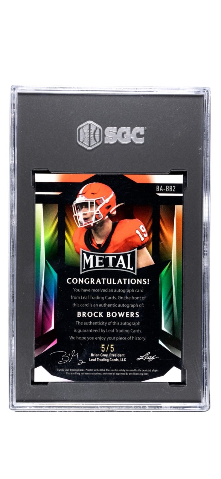 5/5* Brock Bowers RC Auto 2023 Leaf Metal Brock Bowers Silver NFL Raiders SGC 10