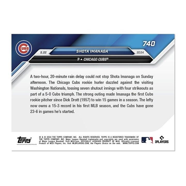 5/5 Shota Imanaga RC 1st Cub Rookie /15 Wins 2024 MLB TOPPS NOW Card 740 IN HAND