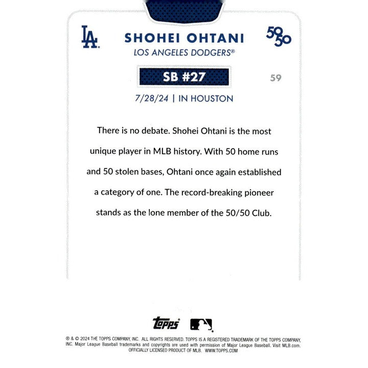 50/50 LIMITED EDITION! Shohei Ohtani MLB LA Dodgers 2024 TOPPS NOW Season #SB 27