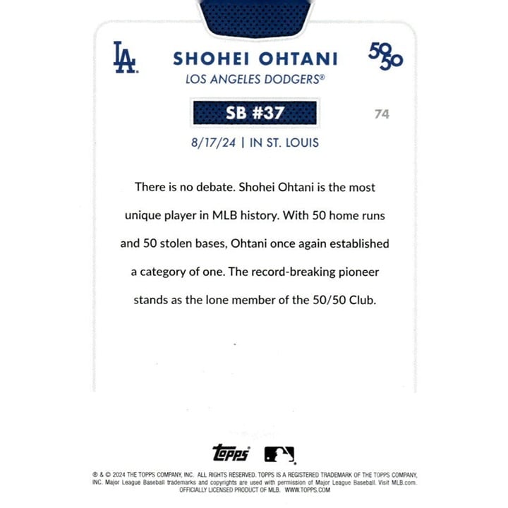 50/50 LIMITED EDITION! Shohei Ohtani MLB LA Dodgers 2024 TOPPS NOW Season #SB 37