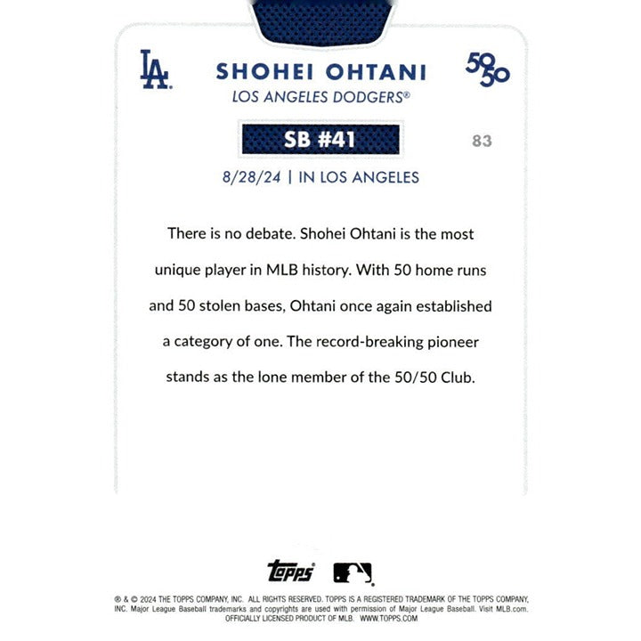 50/50 LIMITED EDITION! Shohei Ohtani MLB LA Dodgers 2024 TOPPS NOW Season #SB 41
