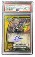 53/75* 2024 Bowman University Football Jeremiyah Love RC AUTO Yellow Ref. PSA 10