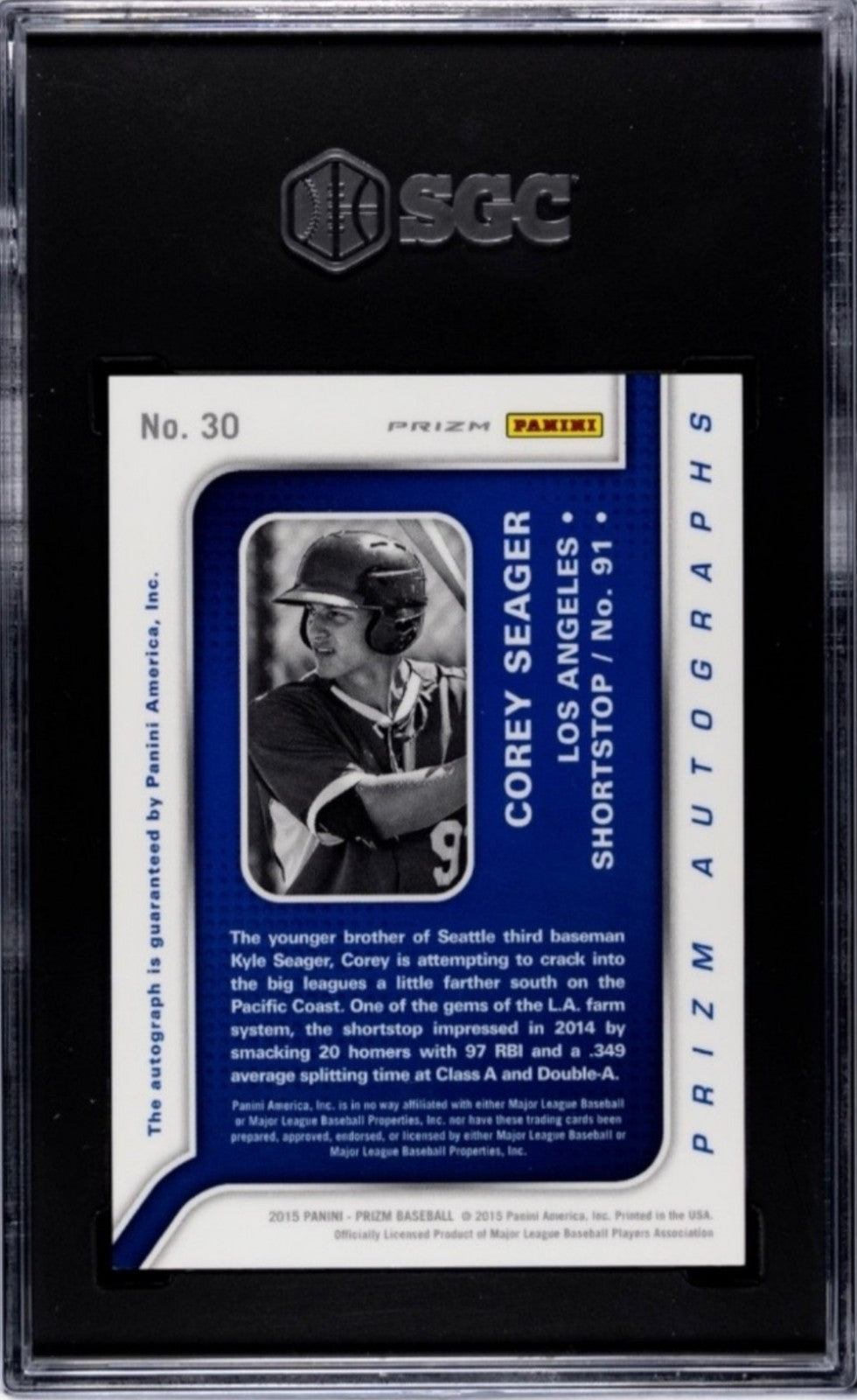 58/125 2015 PANINI PRIZM COREY SEAGER RC AUTO RED POWER PRIZM MLB Rangers 30 8.5
