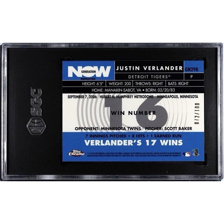 72/100 2007 Topps Chrome Justin Verlander Gen. Now Refractor Card #GN298 SGC 8.5