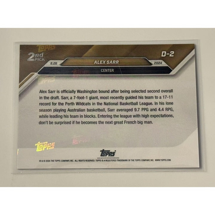 Alex Sarr RC* - 2024 TOPPS NOW NBA Wizards Rookie Draft Night Card D-2 - IN HAND