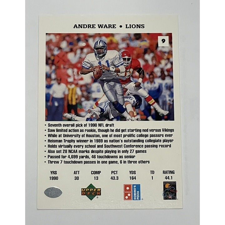 Andre Ware 1991 The Quarterbacks Challenge Dominoes Card #9 - NFL Lions Vintage*