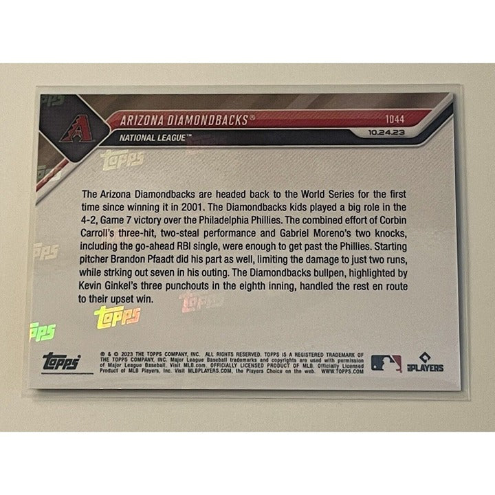 Arizona Diamondbacks Advance World Series 2023 MLB TOPPS NOW Baseball Card #1044