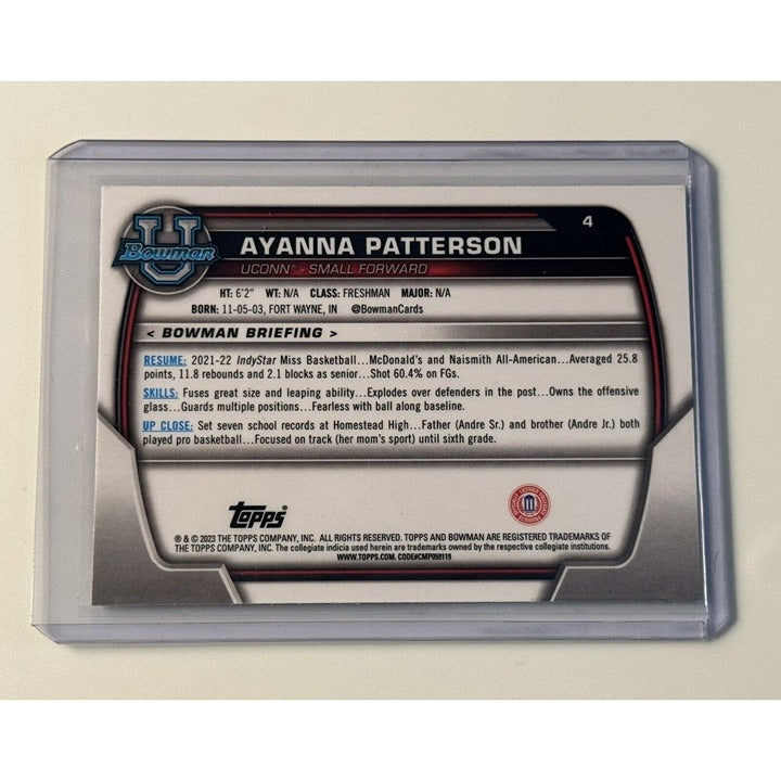 Ayanna Patterson 1st Bowman 2023 Bowman Chrome University #4 NCAA UConn Huskies*