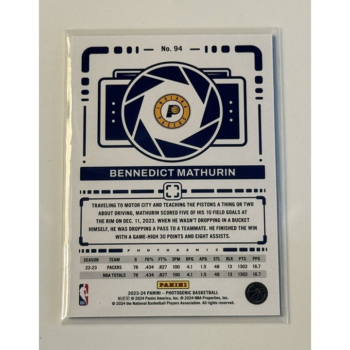 Bennedict Mathurin* 2023-24 Panini PhotoGenic NBA Indiana Pacers Basketball #94*