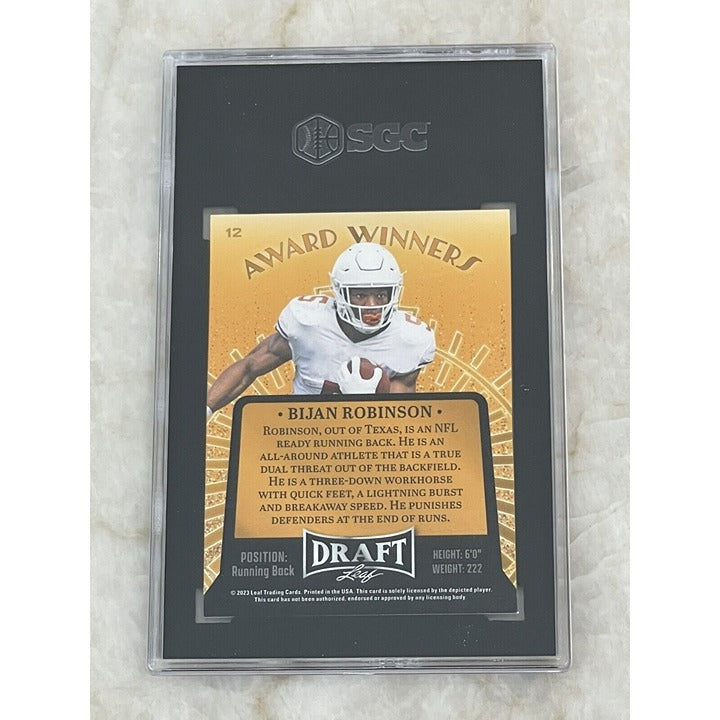 Bijan Robinson RC 2023 Leaf Draft #12 Rookie Texas/Falcons Award Winners SGC 9.5