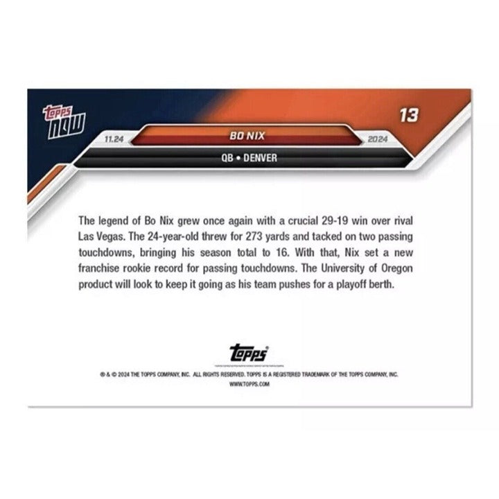 BO NIX RC* 16 TDS Sets Rookie Record 2024 Topps NOW NFL Broncos - Card 13 READY!