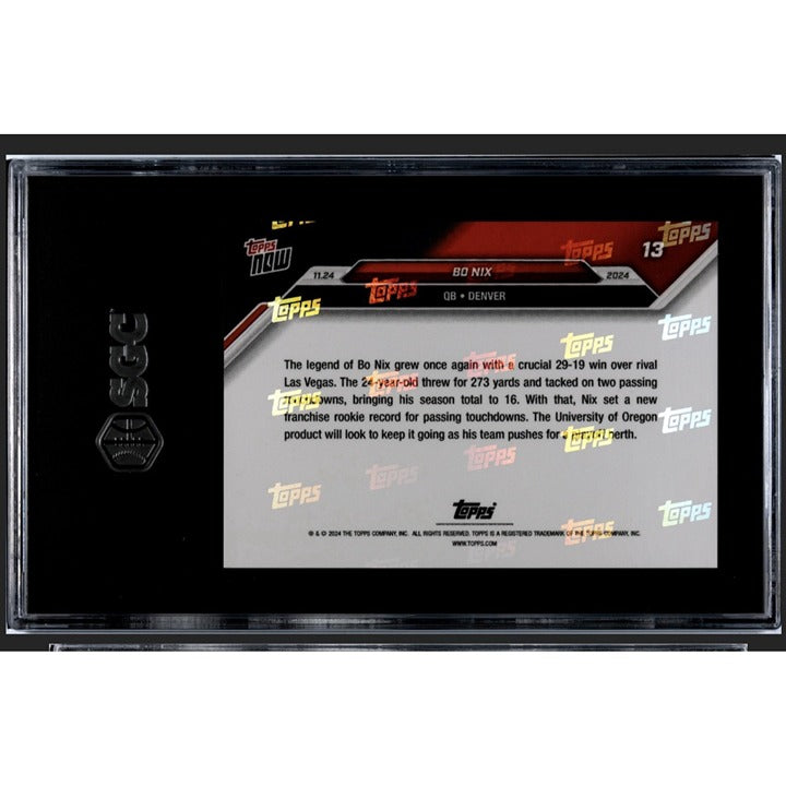 Bo Nix RC* 2024 Topps NOW Football Denver Broncos RC PURPLE VARIATION #13 SGC 10