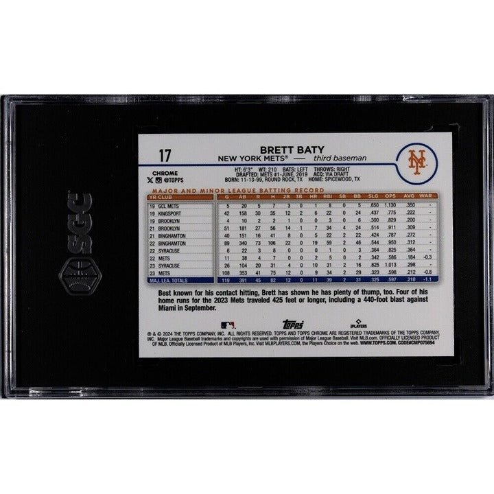 Brett Baty* - 2024 Topps Chrome MLB NL New York Mets Baseball Card #17 - SGC 9.5
