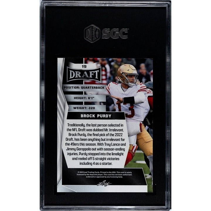 Brock Purdy* 2023 Leaf Draft Green NFL San Francisco 49ers Football #19 - SGC 9*