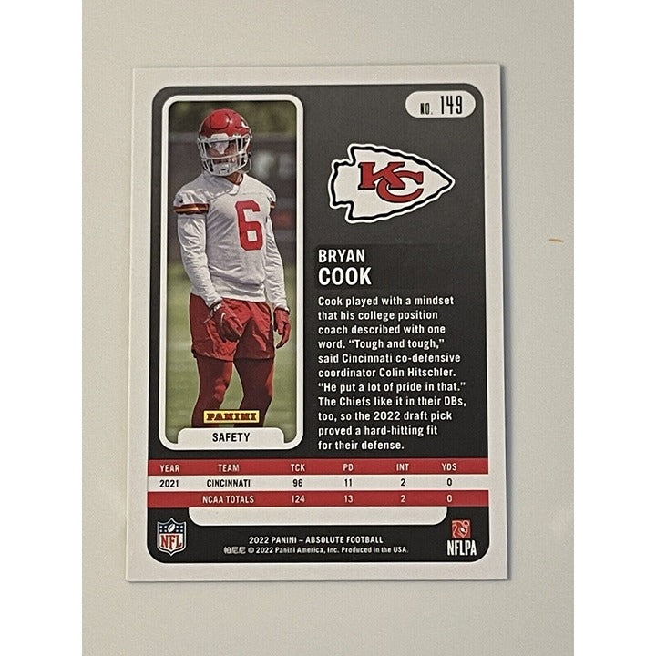 Bryan Cook RC - 2022 Panini Absolute Football #149 - Kansas City Chiefs NFL Card