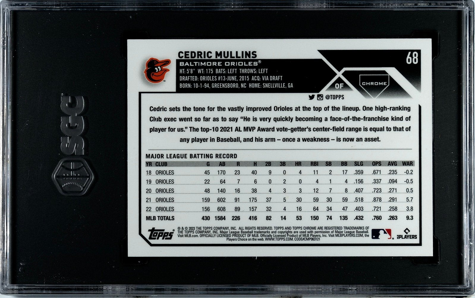 Cedric Mullins 2023 Topps Chrome #68 Orange Wave Refr. 25/25 MLB Orioles SGC 10*