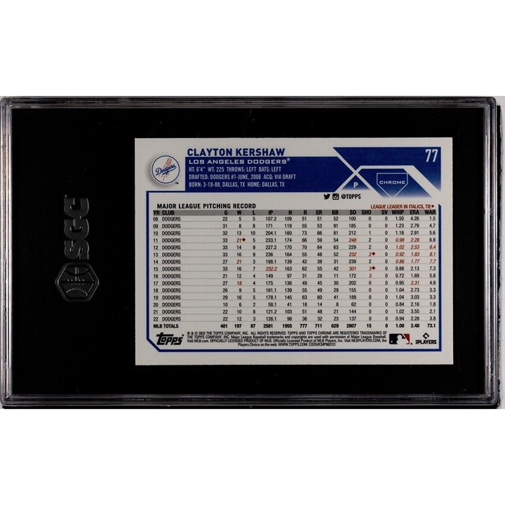 Clayton Kershaw* - 2023 Topps Chrome MLB Los Angeles Dodgers Card #77 - SGC 9.5*