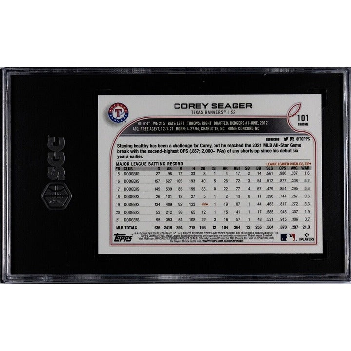 Corey Seager* 2022 Topps Chrome Refractor* MLB Texas Rangers Baseball #101 SGC 9