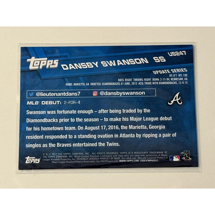 Dansby Swanson RC* 2017 Topps Update Series MLB Braves/Cubs - Rookie Card #US247