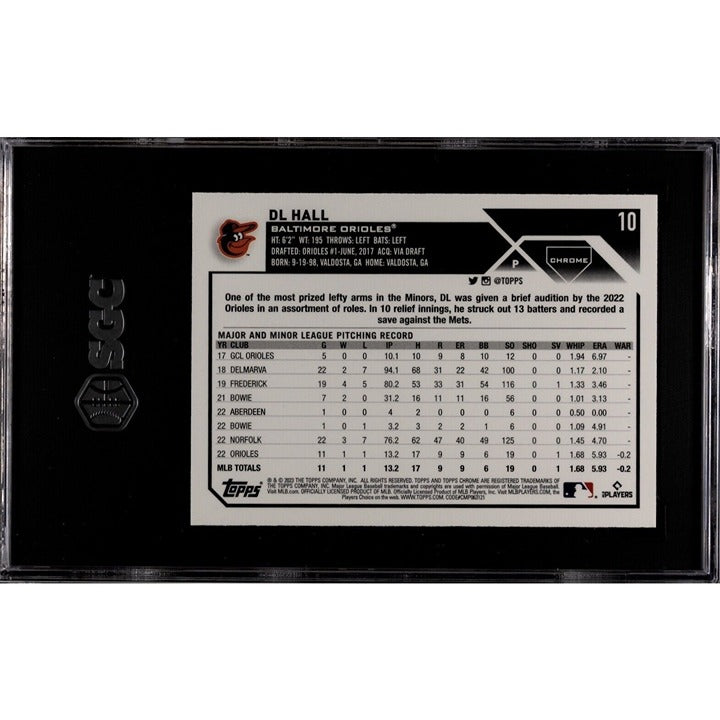 DL Hall* RC - 2023 Topps Chrome - MLB Baltimore Orioles - BB Card #10 - SGC 9.5*