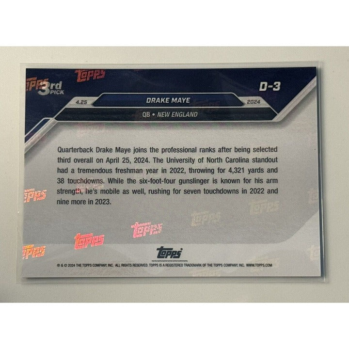 Drake Maye* - RC* - 2024 NFL Draft TOPPS NOW #D-3 - 3rd Pick Patriots - IN HAND!