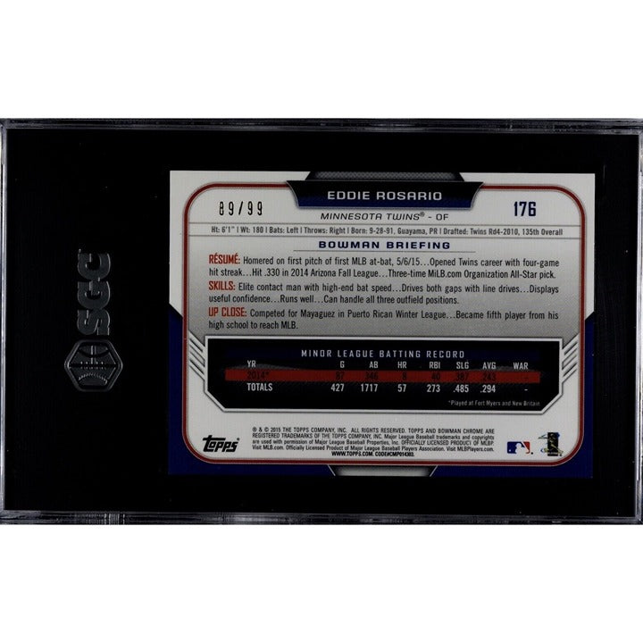 Eddie Rosario 89/99 Auto 2015 Bowman Chrome Green Refr. 176 Twins/Braves SGC 8.5